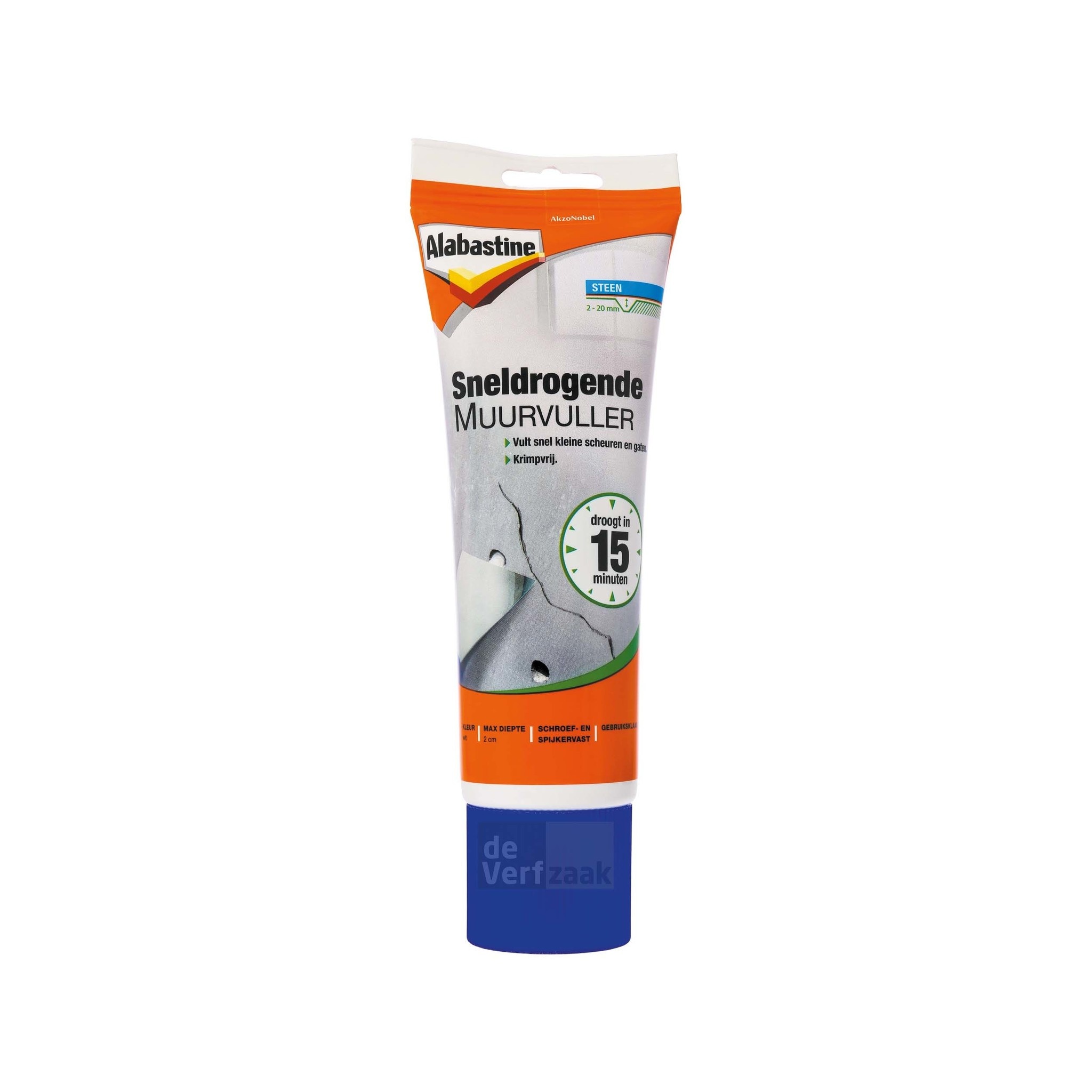 Alabastine Sneldrogende Muurvuller kun je zowel binnen als buiten gebruiken. Sneldrogende Muurvuller is goed schuurbaar en droogt in een witte kleur op. De muurvuller van Alabastine is na 30 minuten droog en is overschilderbaar.