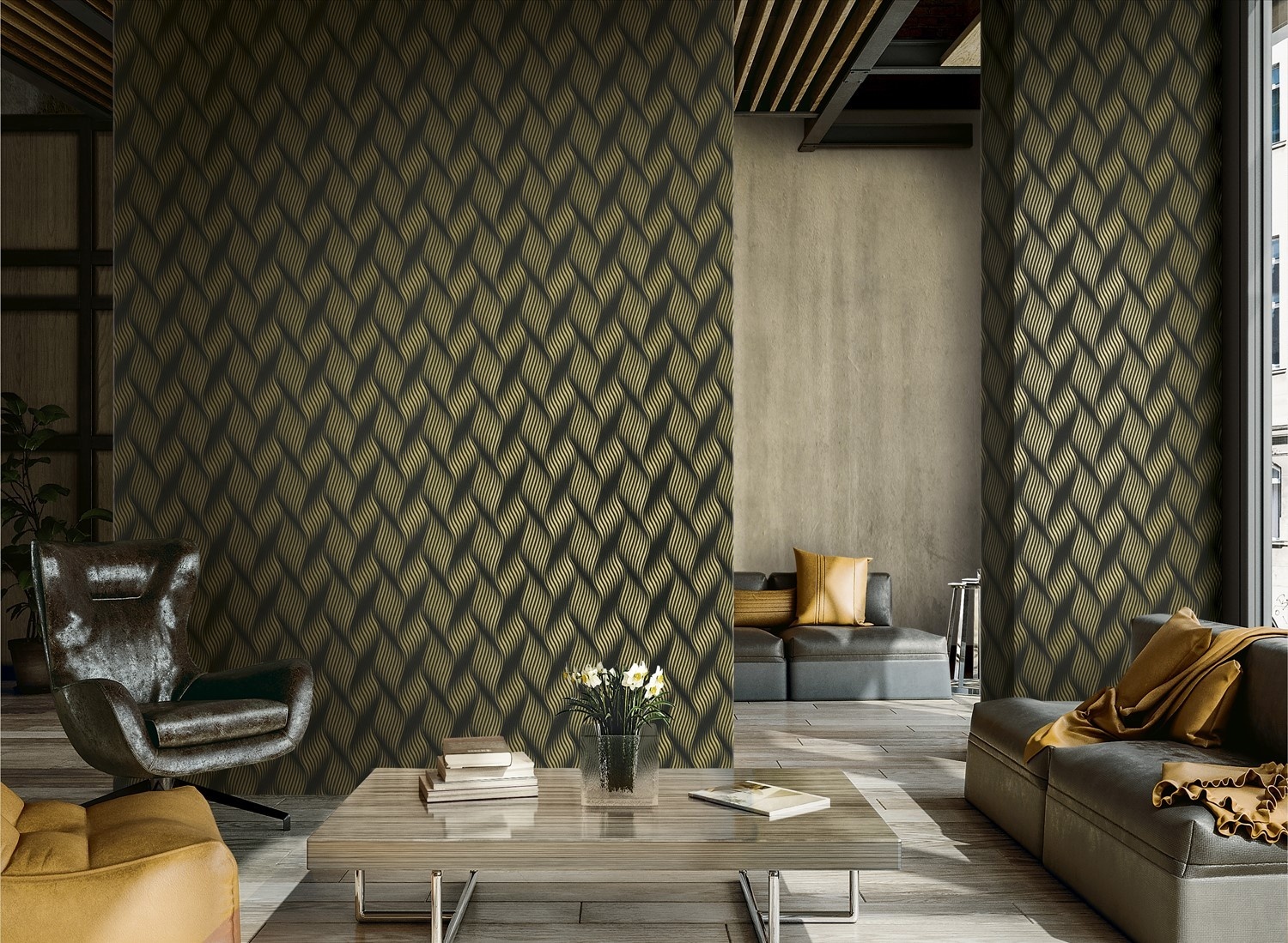 Dutch Wallcoverings FC New Tekko golf zwart/goud - 20044