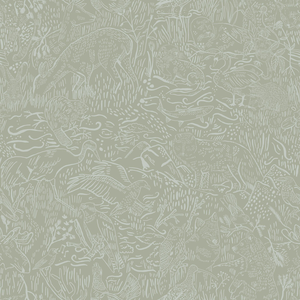 Dutch Wallcoverings FC Klara & Tove- Landskapsdjur Green - 26017