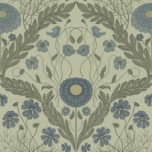 Dutch Wallcoverings Blomstermala - Marguerite Bl/Grn - Blauw/Groen