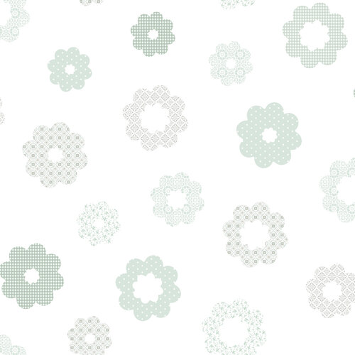 Dutch Wallcoverings FC Joy- bloemen wit/mintgroen - 72085