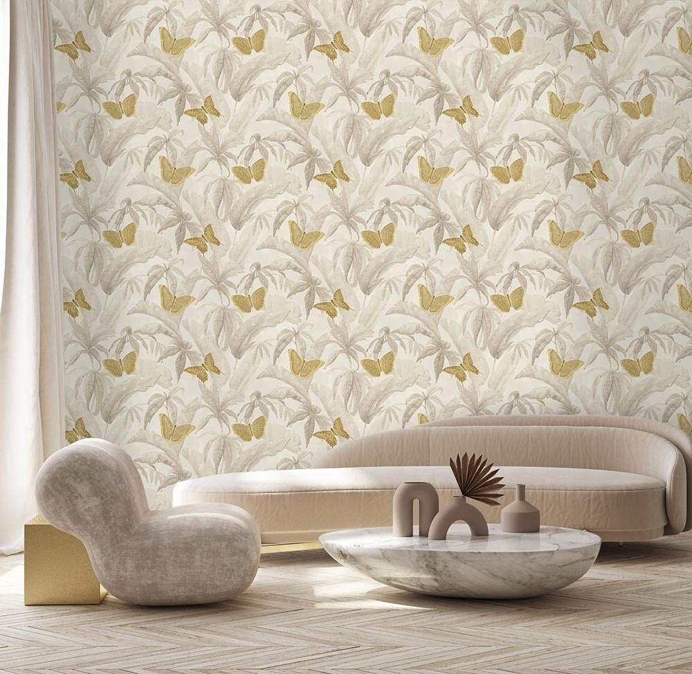 Dutch Wallcoverings FC Designology- Silverdale Gold Butterfly - DE01731