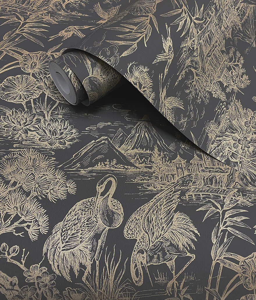 Dutch Wallcoverings FC Arboretum- Natoru Charcoal Gold - 91701