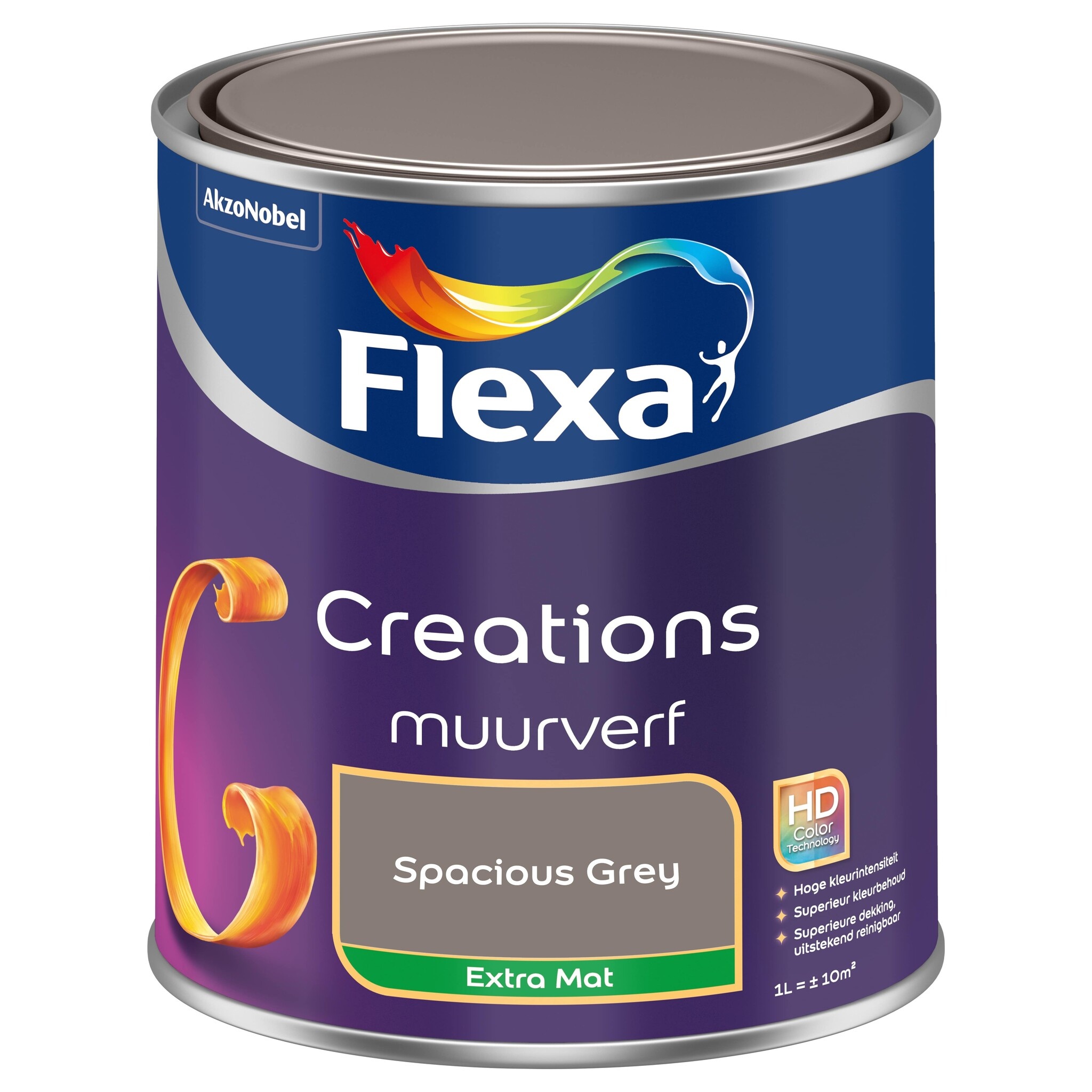 Deze Spacious Grey Flexa is beschikbaar in 2.5 liter. Neig je toch naar een iets andere tint grijs? Naast deze spacy grijze kleur zijn er nog veel meer Flexa Creations Extra Mat kleuren binnen de kleurcategorie grijs. Meer weten over muurverf, lakken of effectverf? Vraag het onze Flexa specialisten op de klantenservice!