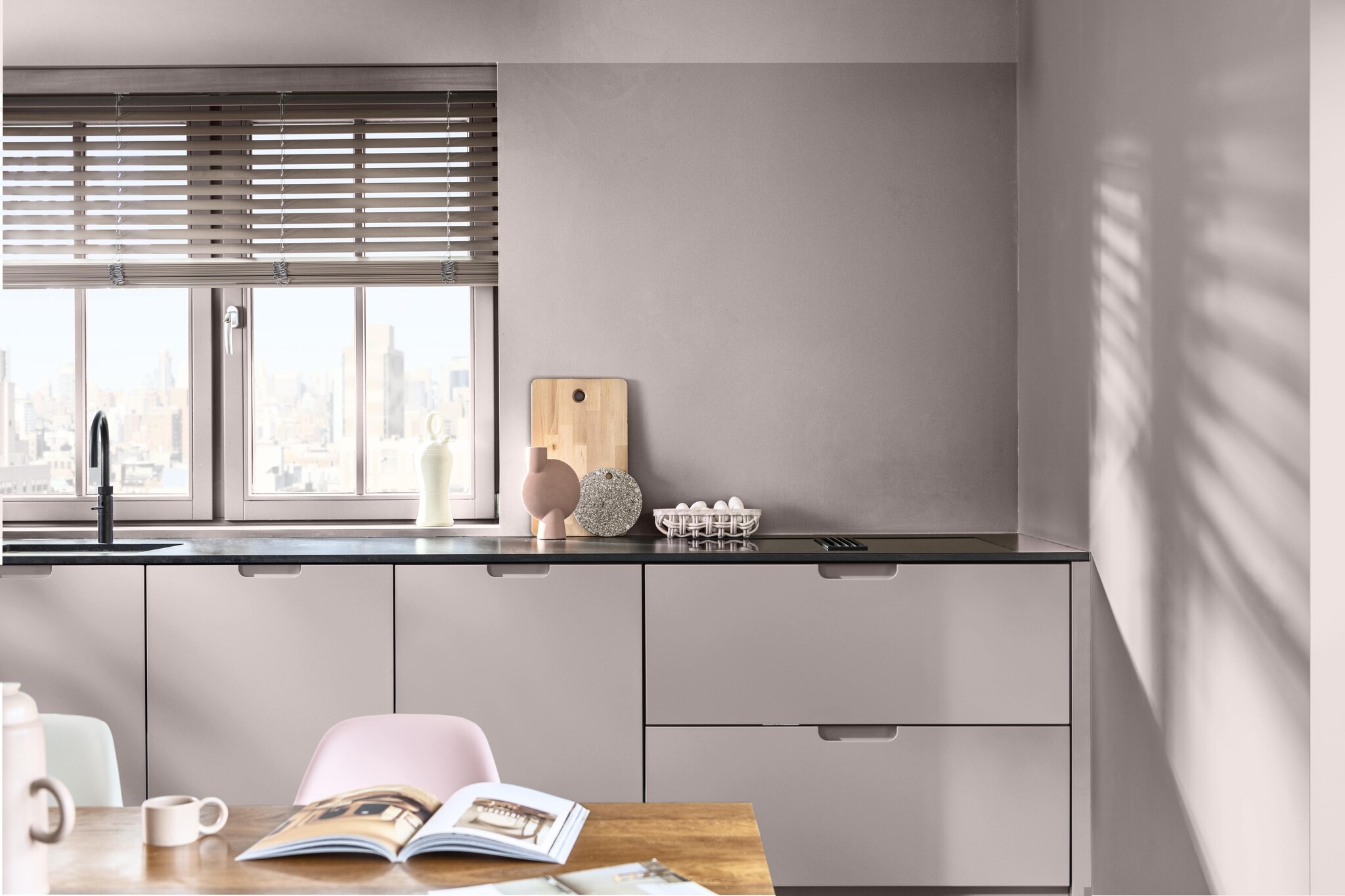 Sweet Embrace Flexa is een kleurenmix van grijs en lichtroze. Deze combinatie zorgt voor een tijdloos, comfortabel en kalm gevoel. Met deze kleur breng je rust in je ruimte. Door zijn tijdloze uiterlijk is het makkelijk te combineren met andere tinten. Speciaal hiervoor zijn er drie kleurpaletten aan de Flexa Kleur van 2024 gekoppeld. Zo kun je je interieur helemaal naar eigen smaak maken.