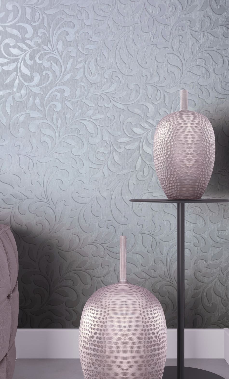 Vind jouw kleur voor Jackie Behang met klassieke ornamenten-bladeren print - 6829-40