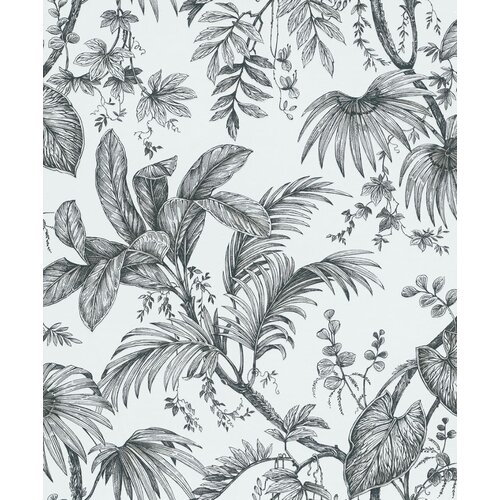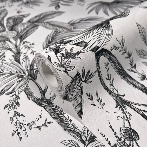 Vind jouw kleur voor Jackie Behang zwart-wit met bladeren - 6818-10