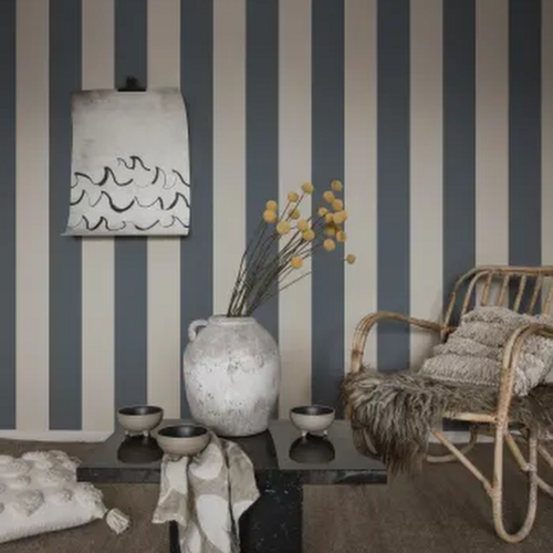 Dit brede streepbehang heeft super strakke strepen van ruim 13 cm breed.