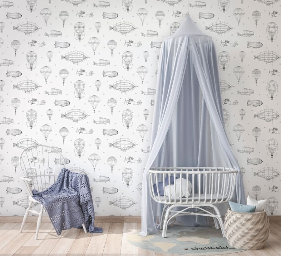 Vind jouw kleur voor Kids Walls Behang met zeppelins en parachutes - 45827