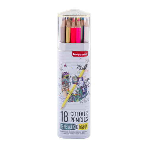 Bruynzeel Kleurpotloden blik metallic & neon - 18 kleuren