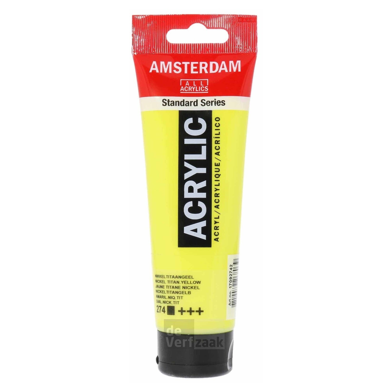 Nikkeltitaangeel (274) is een dekkende verf met uitstekende lichtechtheid (+++). Amsterdam acrylverf is gemaakt op basis van hoogwaardige pigmenten en 100% acrylaatemulsie. Dit product heeft een inhoud van 120 ml, maar biedt alles wat een fanatieke hobbyist nodig heeft. Deze Amsterdam hobbyverf is geurloos, voorkomt scheuren en blijft zelfs bij dikke lagen flexibel. De romige gemiddelde viscositeit houdt de penseelstreken en texturen vast, maar kan ook worden gebruikt voor een gemakkelijkere, soepele dekking. Kortom, met deze Amsterdam acrylverf maak jij de mooiste kunstwerken.