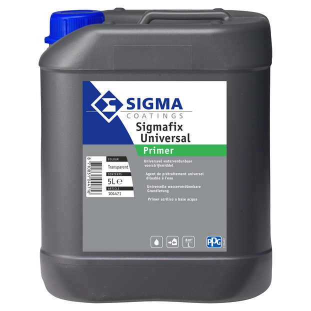 Sigma Sigmafix Universal is een watergedragen voorstrijkmiddel op basis van acrylaatdispersie. Dit Sigma voorstrijkmiddel is geschikt voor zowel binnen als buiten gebruik. Het Sigma voorstrijkmiddel is waterdampdoorlatend, overschilderbaar en behangbaar, onverzeepbaar en heeft een uitstekende impregnering. De Sigma Sigmafix Universal kun je gebruiken voor: