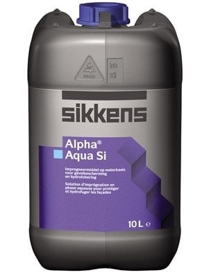 Sikkens Alpha Aqua Si is een watergedragen, kleurloos impregneermiddel. Het impregneermiddel is waterdampdoorlatend, vochtwerend en toepasbaar op alle ondergronden. Daarnaast vermindert het de kans op zoutuitslag, vuilaanhechting, corrosie en groei van algen of mos. De Sikkens Alpha Aqua Si kun je gebruiken voor: